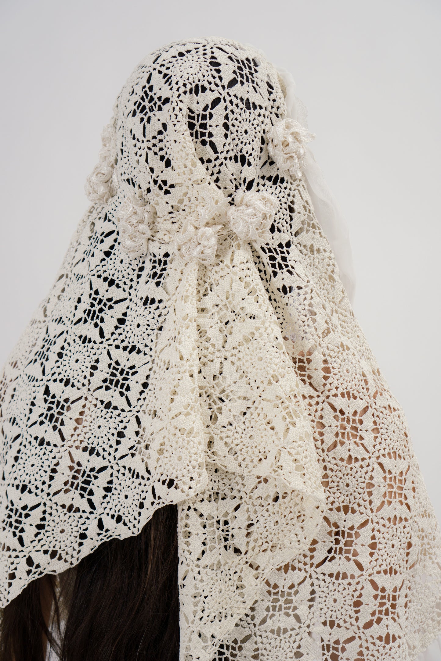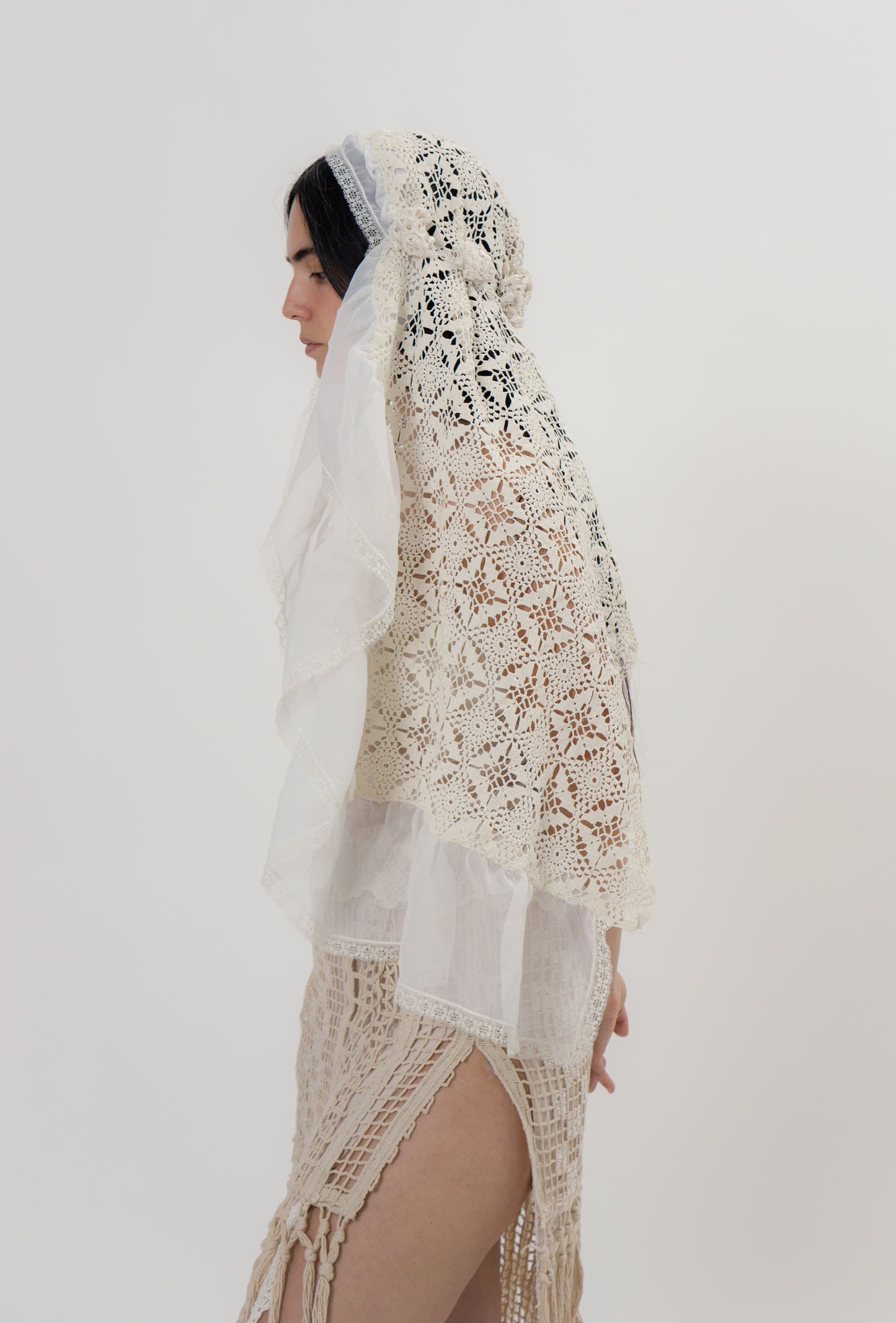 Crochet and silk headpiece