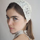 A hand-embroidered crystal bow graces the back, adding a subtle yet luminous touch to the intricate lacework. Lightweight and ethereal, this crochet headpiece sits effortlessly, making it an exquisite choice for brides, couture styling, and those who seek wearable art.