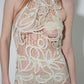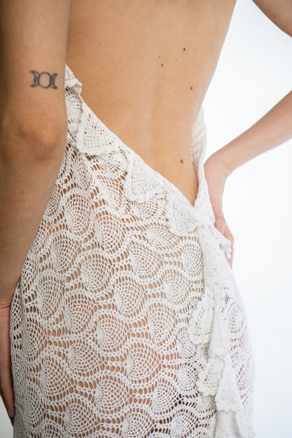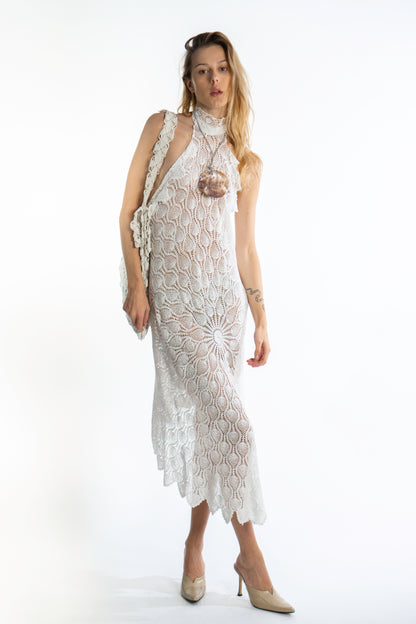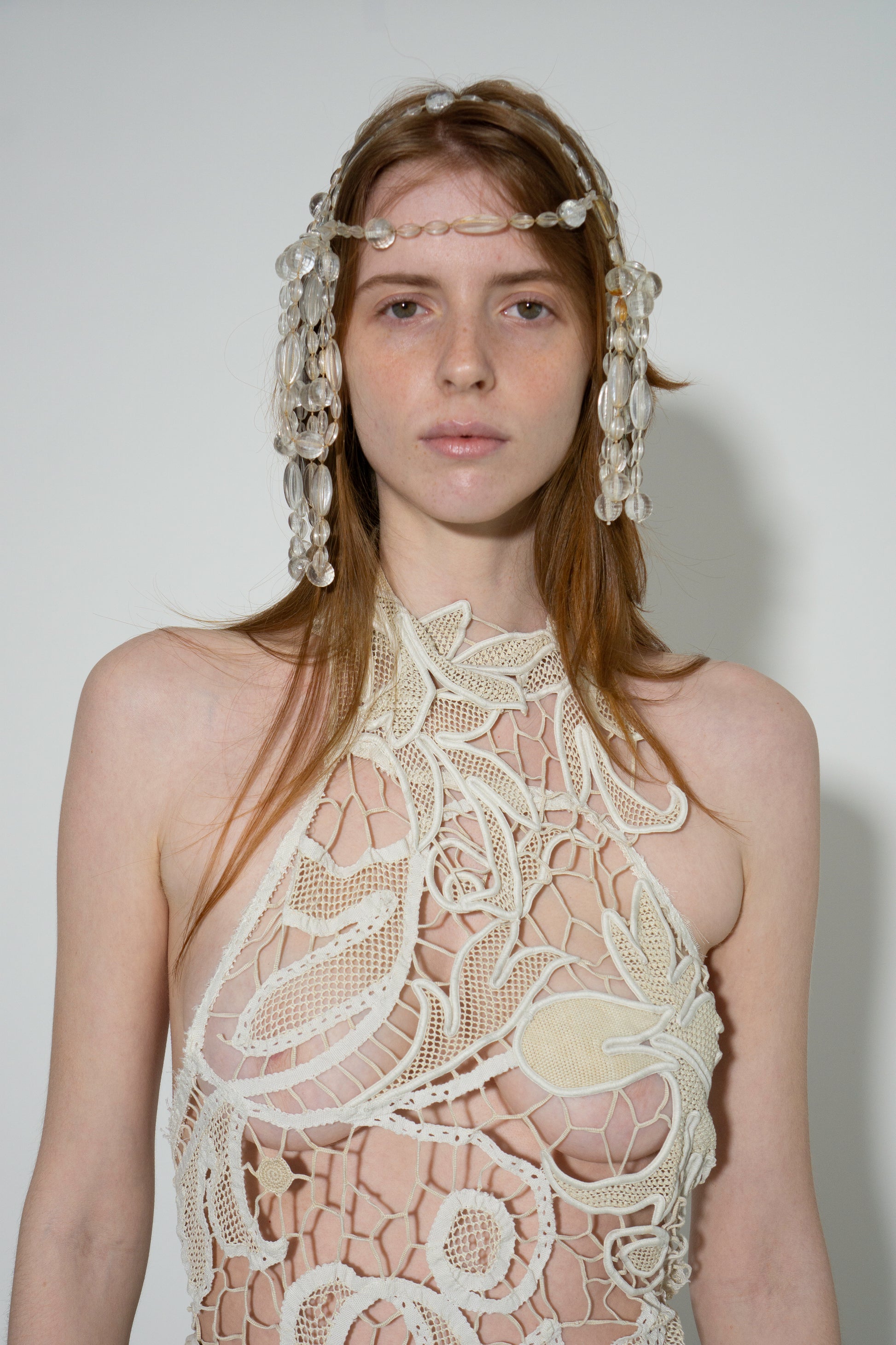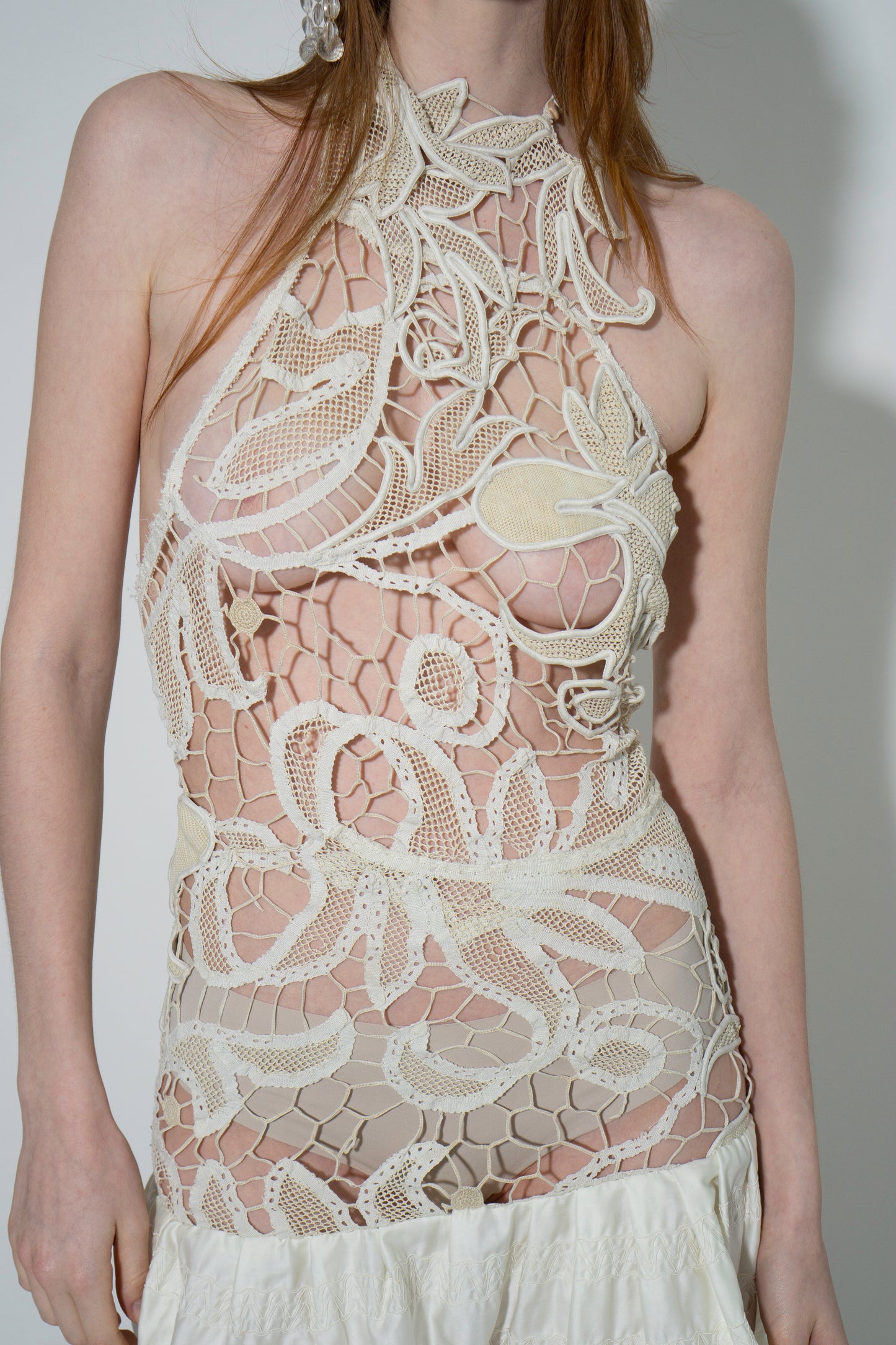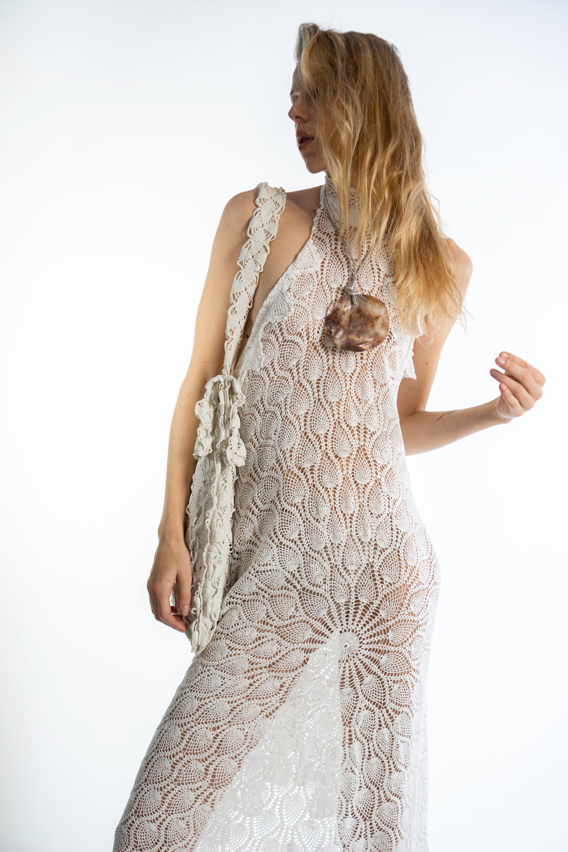 This is a unique piece, means is made by hand and by upcycling materials so there's only one piece in the world. This fabric is a unique 1920s embroidery detailed piece. Was restored at the atelier by us and made into an unique dress.