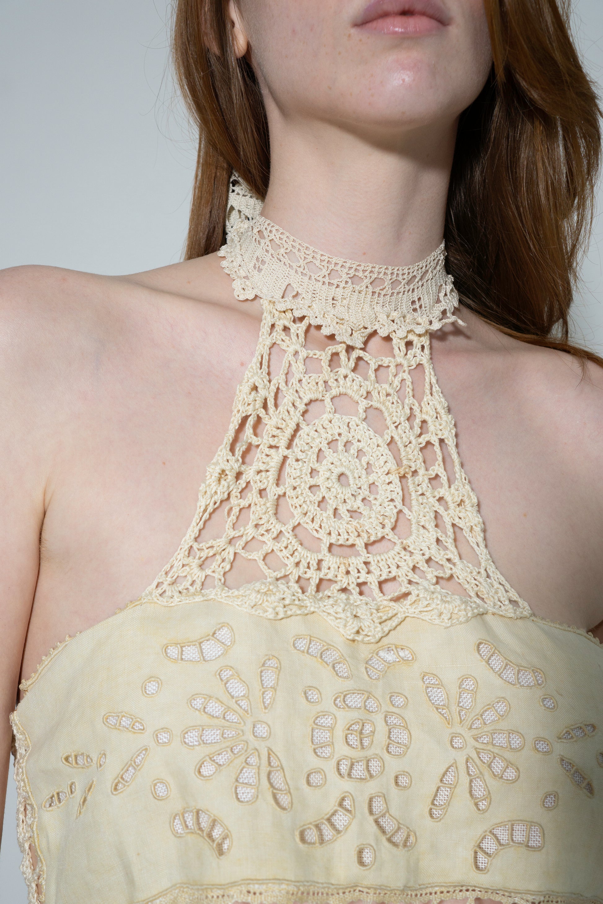 Made by antique 18th century and 19th century mixed crochet and cotton.