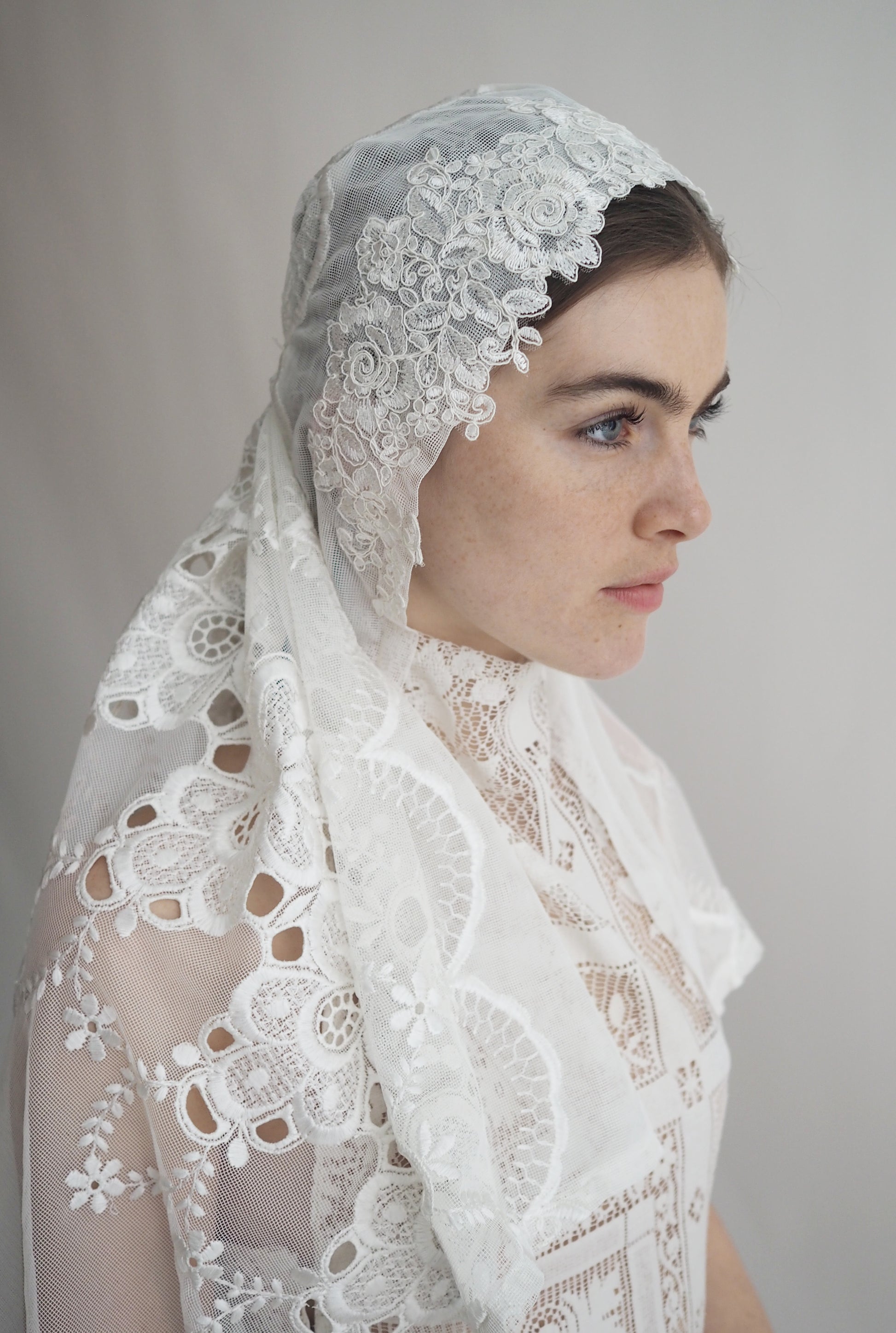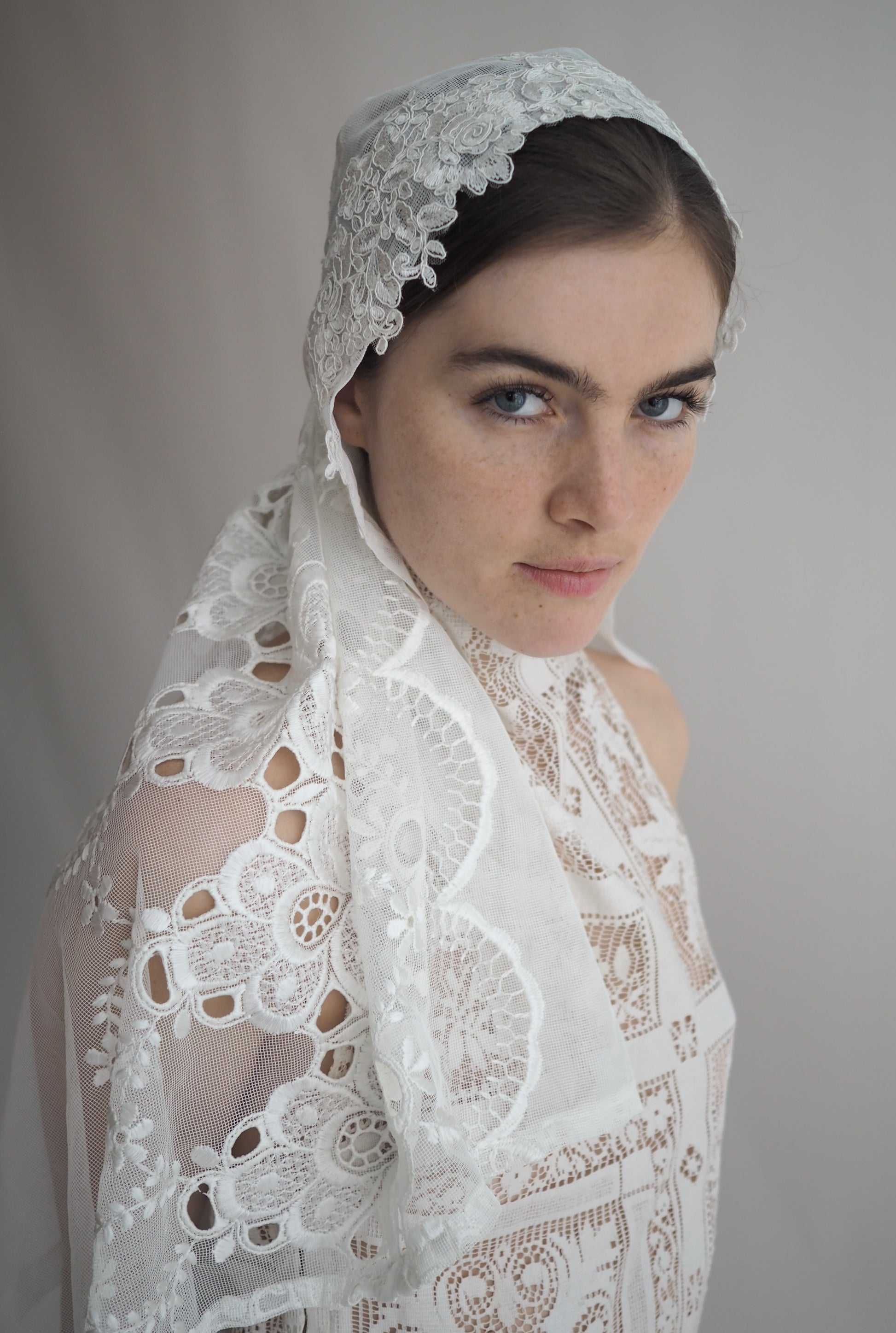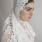 This handmade lace veil can be worn as a bridal veil, statement headpiece, or couture styling element.
