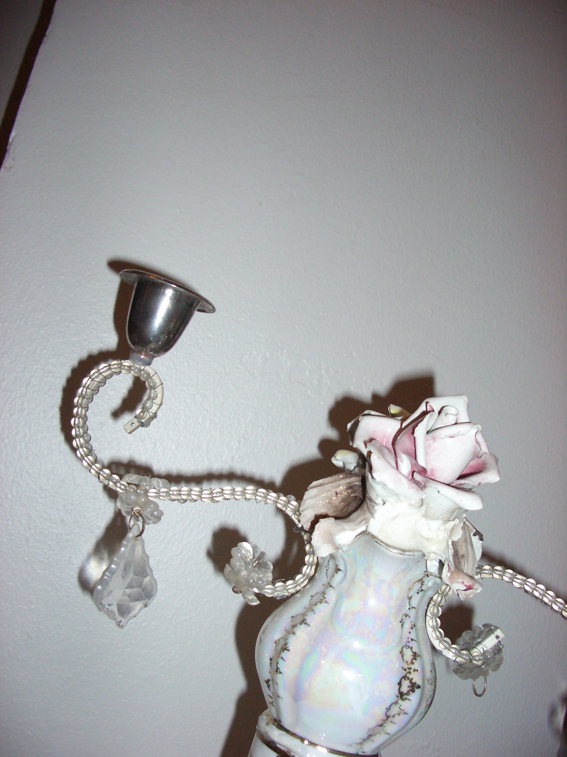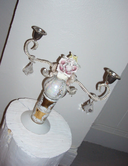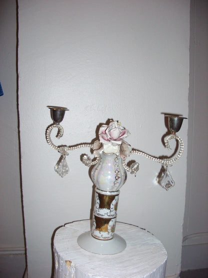 n total for this piece are 9 pieces recycled and attached together with a mix of cement. This candler holder is inspired by the 17th century romanticism. Shape inspired on the Louis V - Louis XV shapes and era.