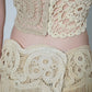 Short crochet skirt made by reusing 1920s antique crochet pieces.