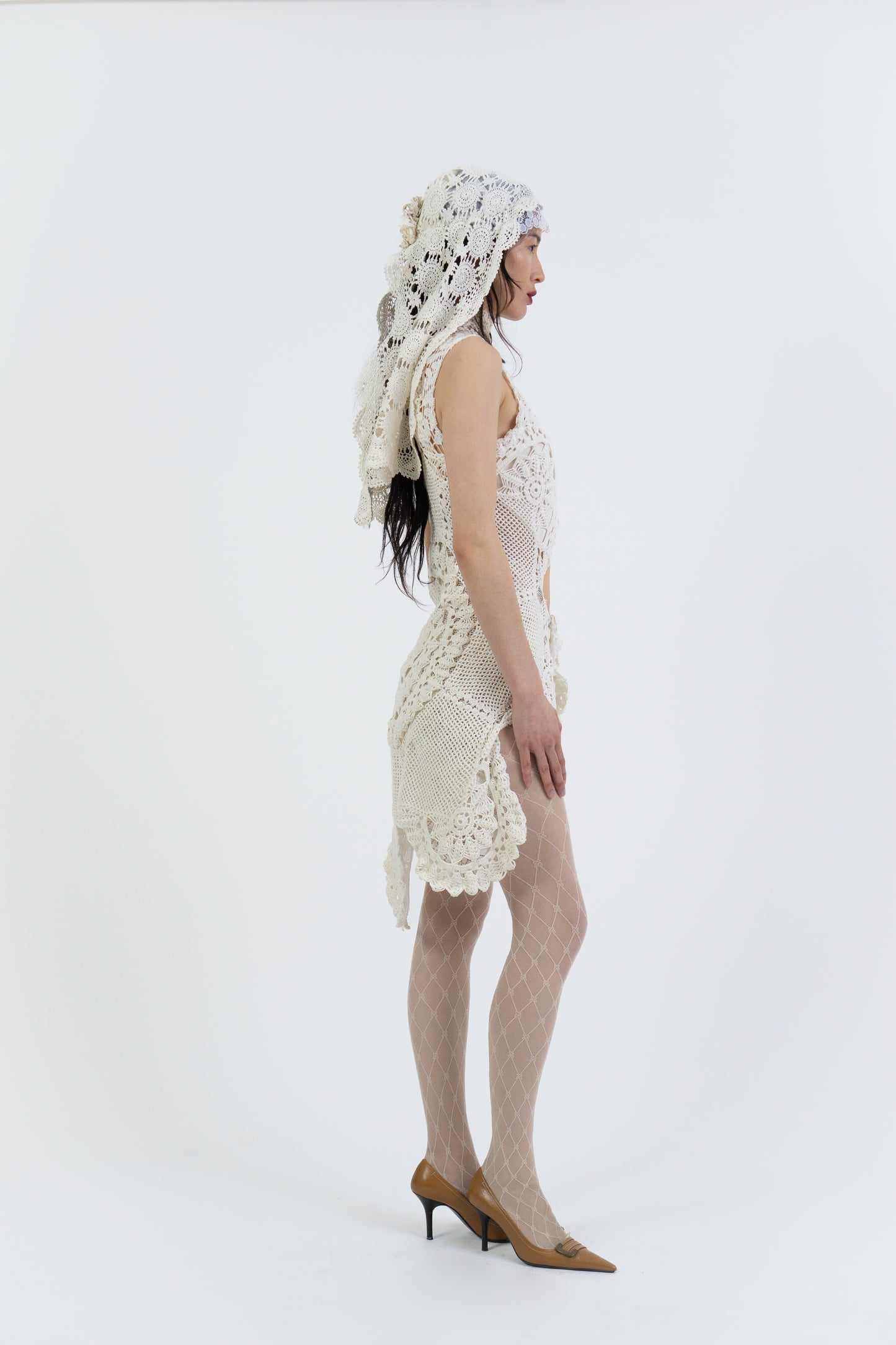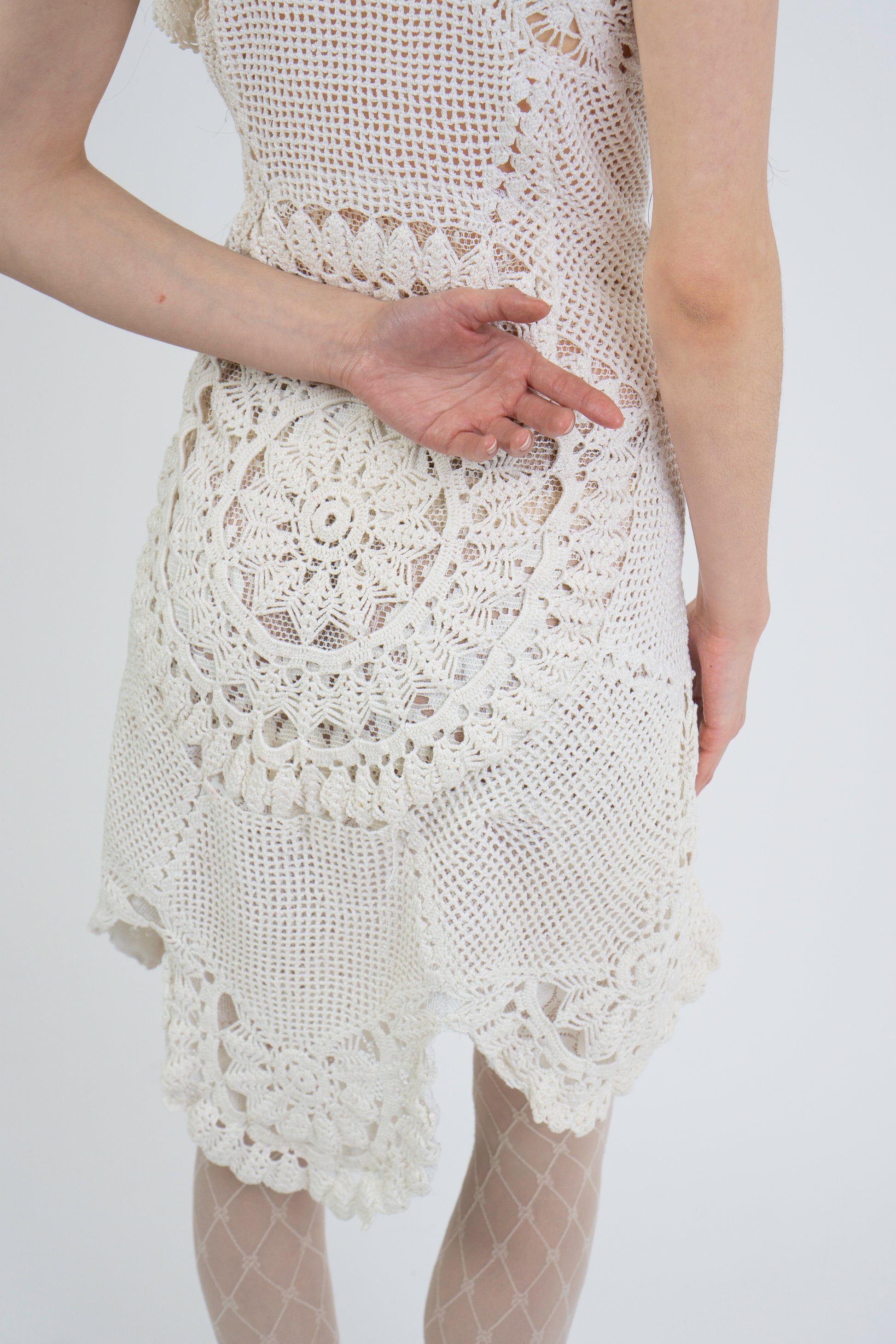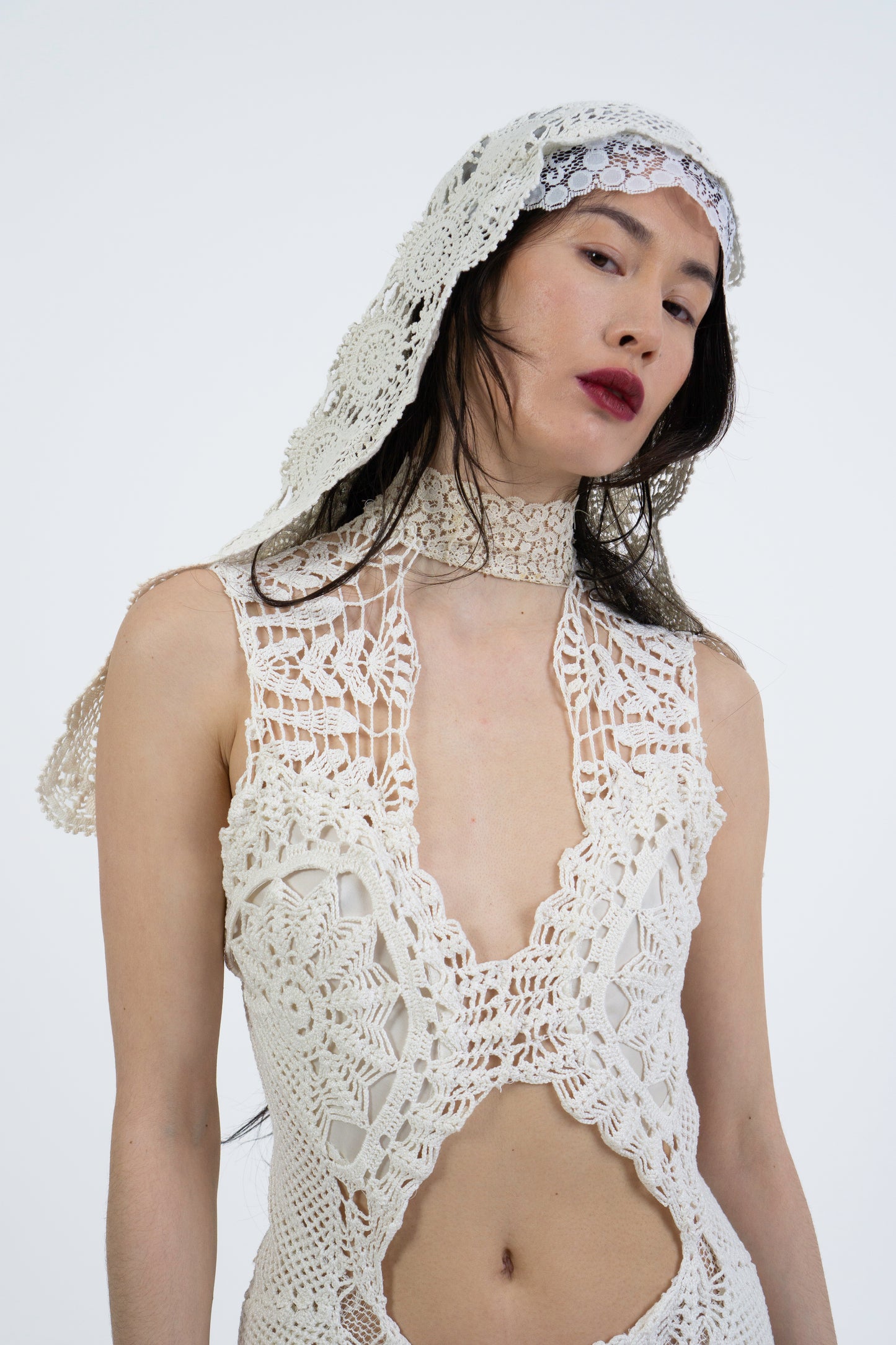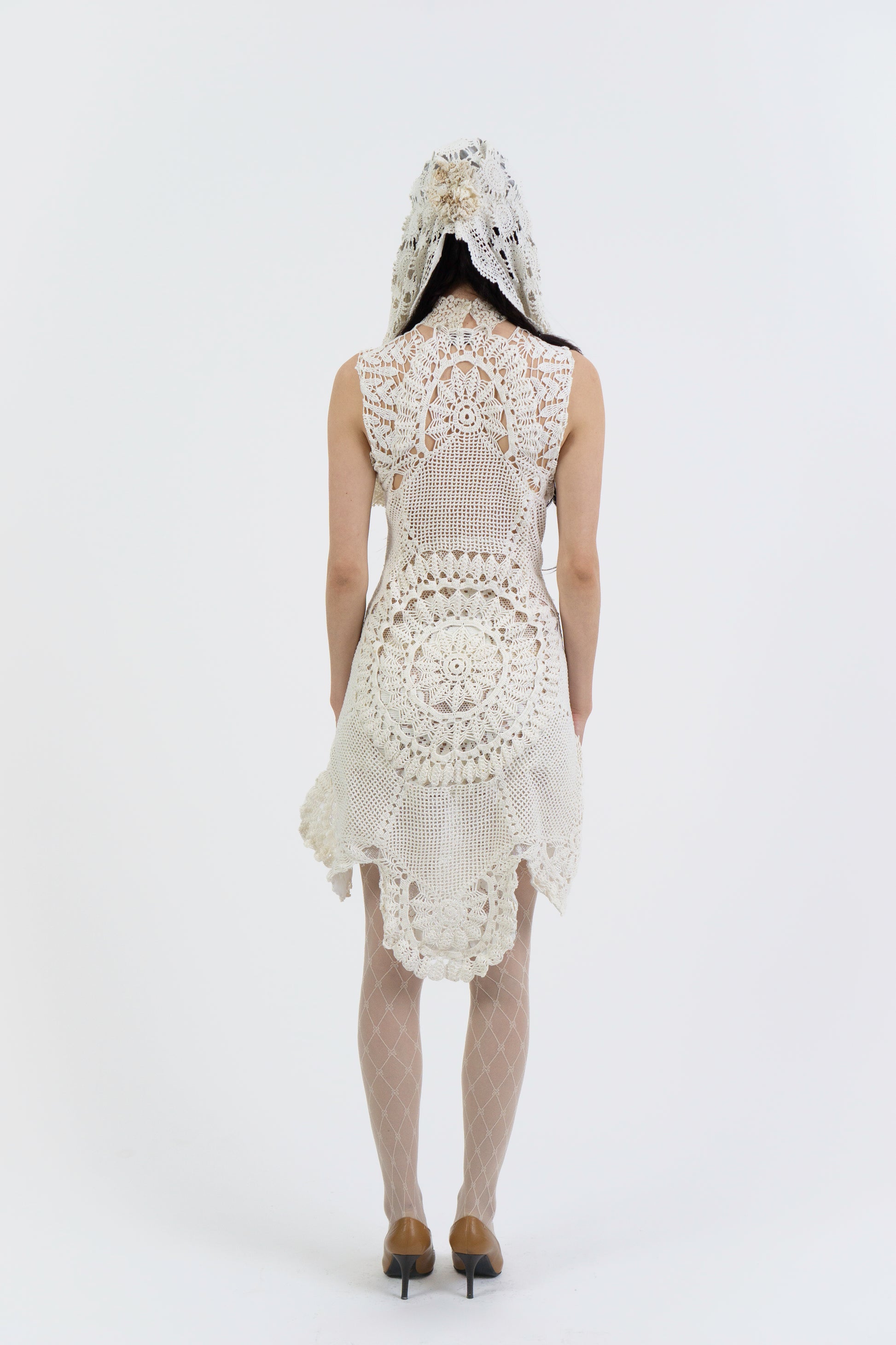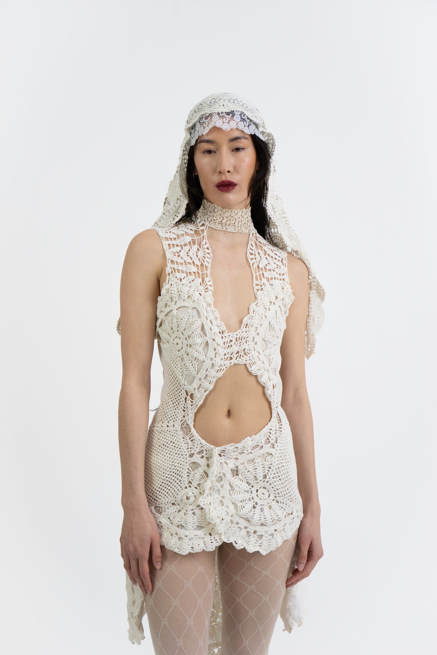 One of a kind piece using antique crochet pieces and finished by hand at our atelier in Paris.