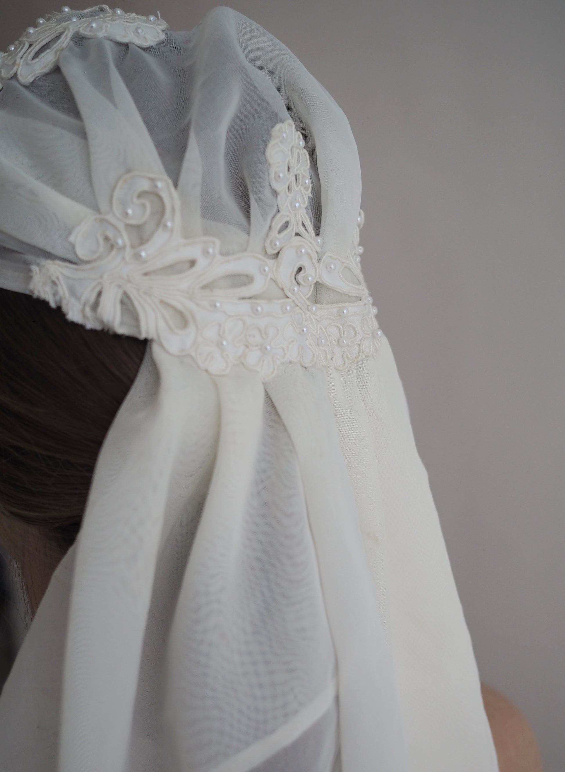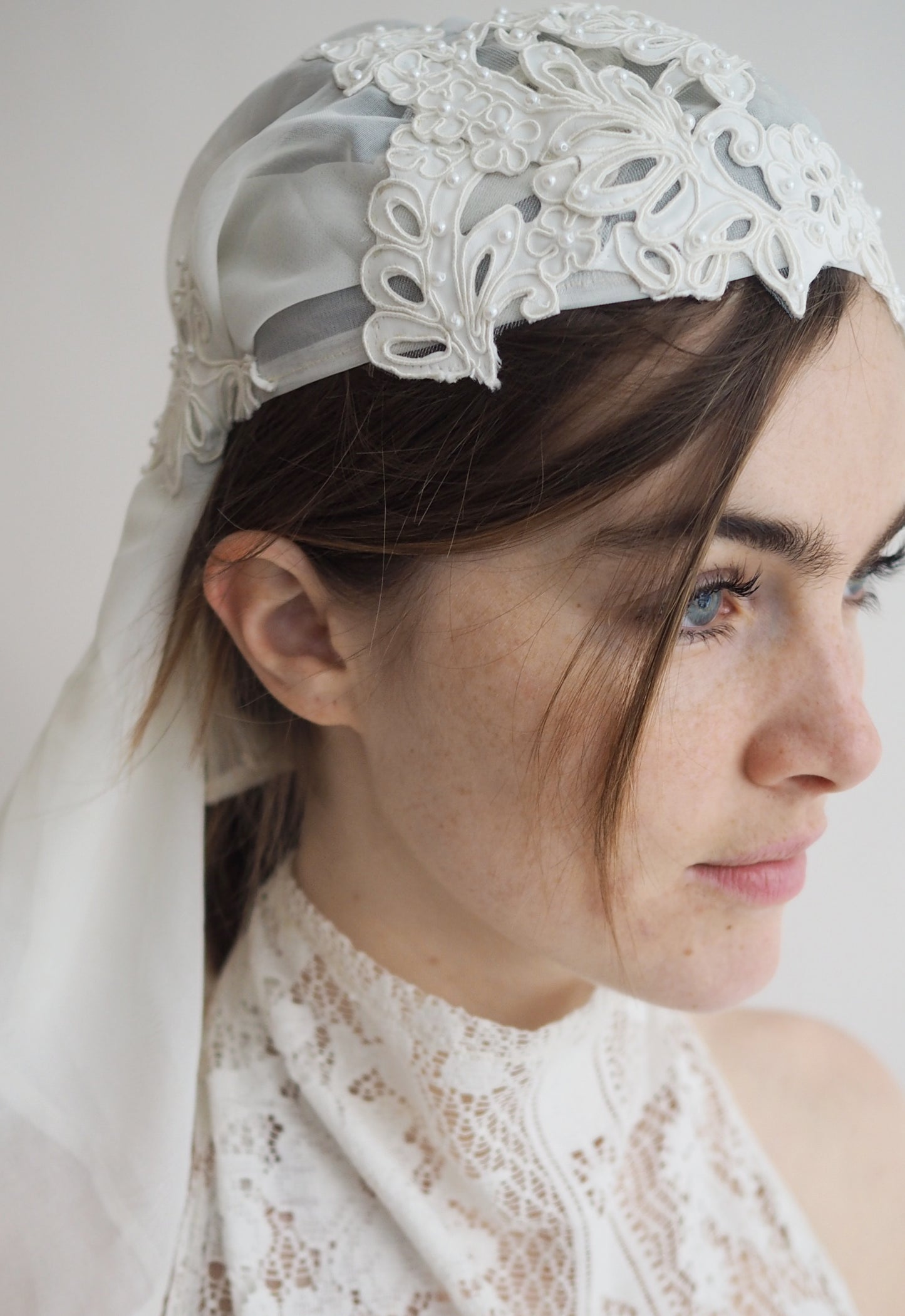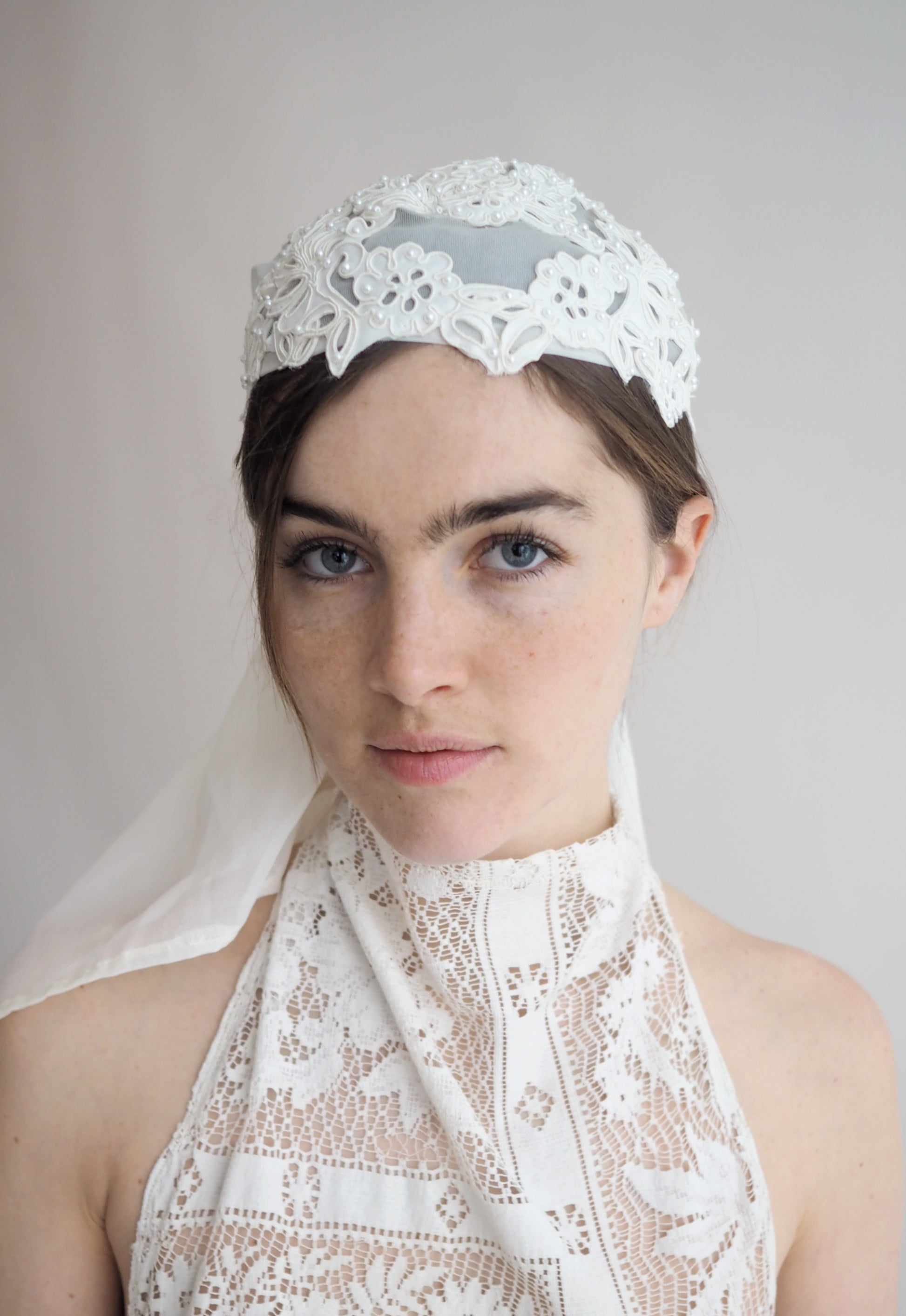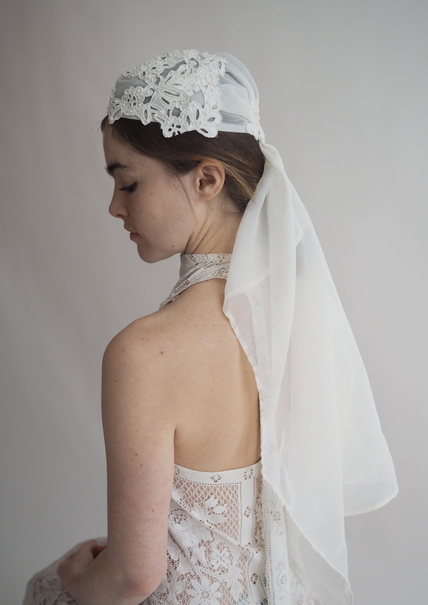 This hand-embroidered pearl veil is crafted with intricate floral embroidery and pearl embellishments, each detail is meticulously stitched by hand, creating a veil that is both romantic and refined.